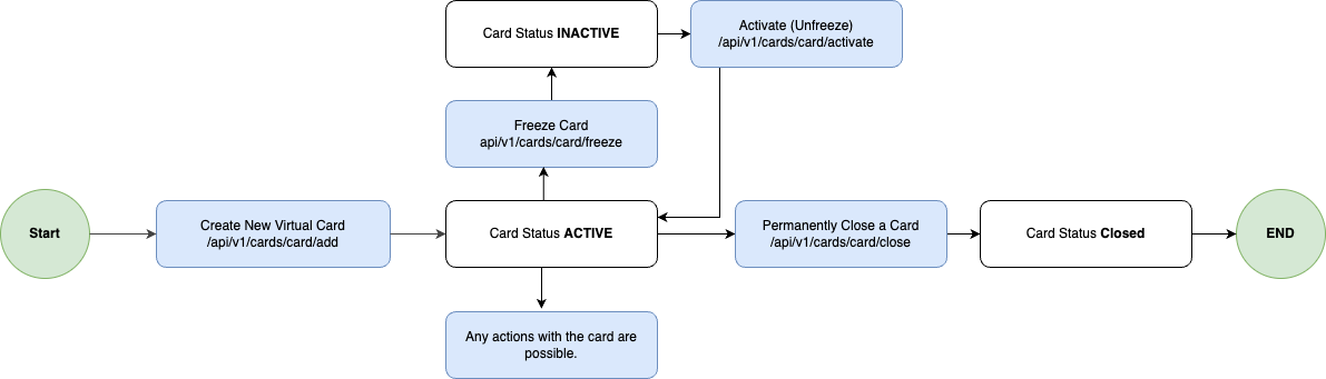- Endpoint Interaction: No endpoint interactions are available for a closed card as it is no longer functional. This status is final, and any attempt to use or reactivate the card will be rejected.